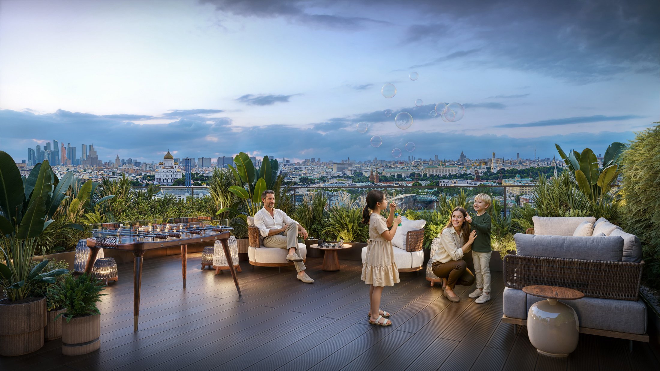 Our penthouses are truly unique, which makes them one of the rarest housing formats on the Moscow market. They rise above Yakimanka and provide breathtaking panoramic views of the Kremlin, the Cathedral of Christ the Savior and the entire city center.